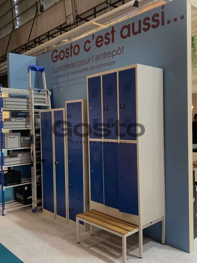 Enfin, une zone dédiée à la manutention présentait nos solutions de vestiaires, bancs et archivage.